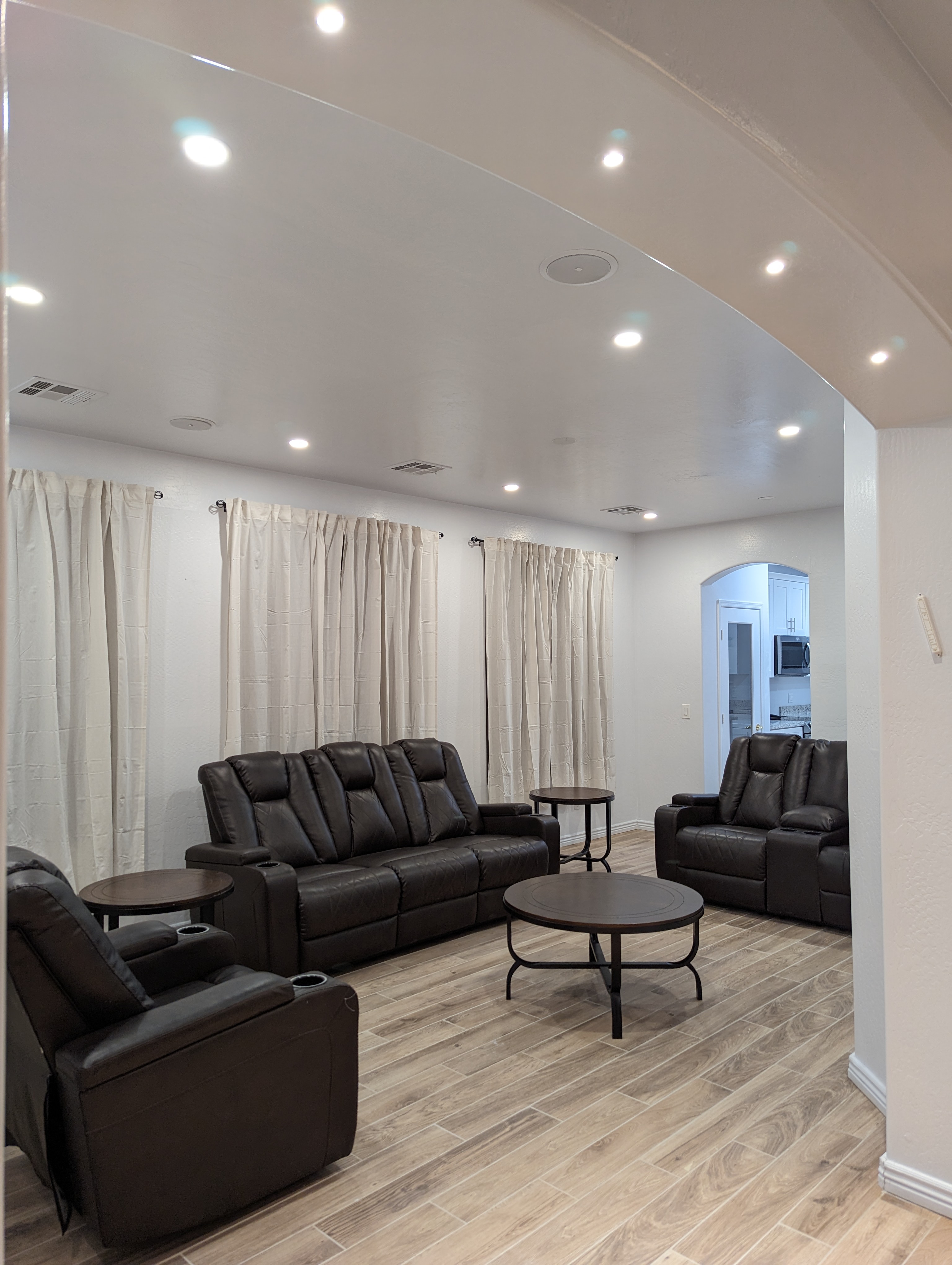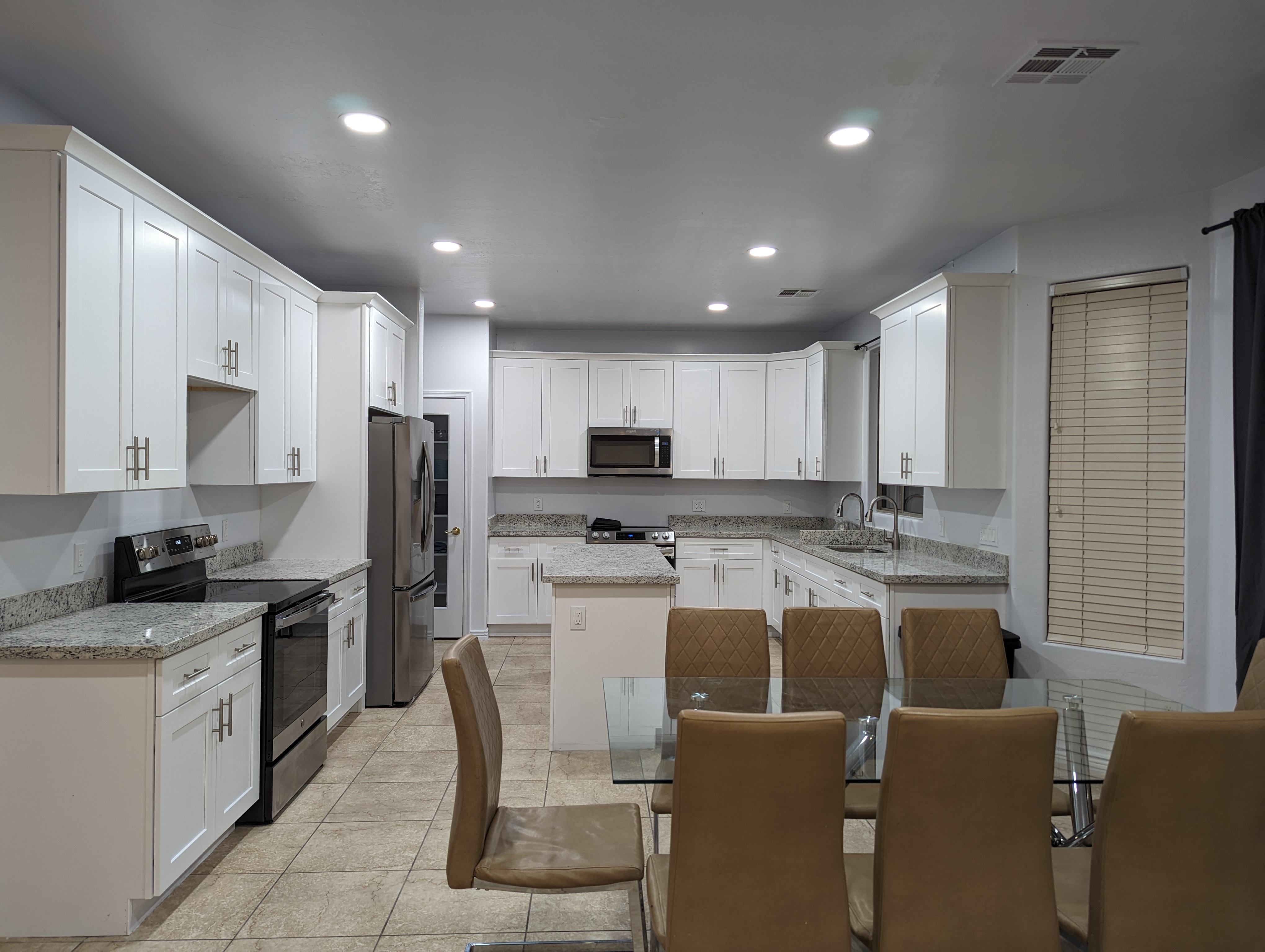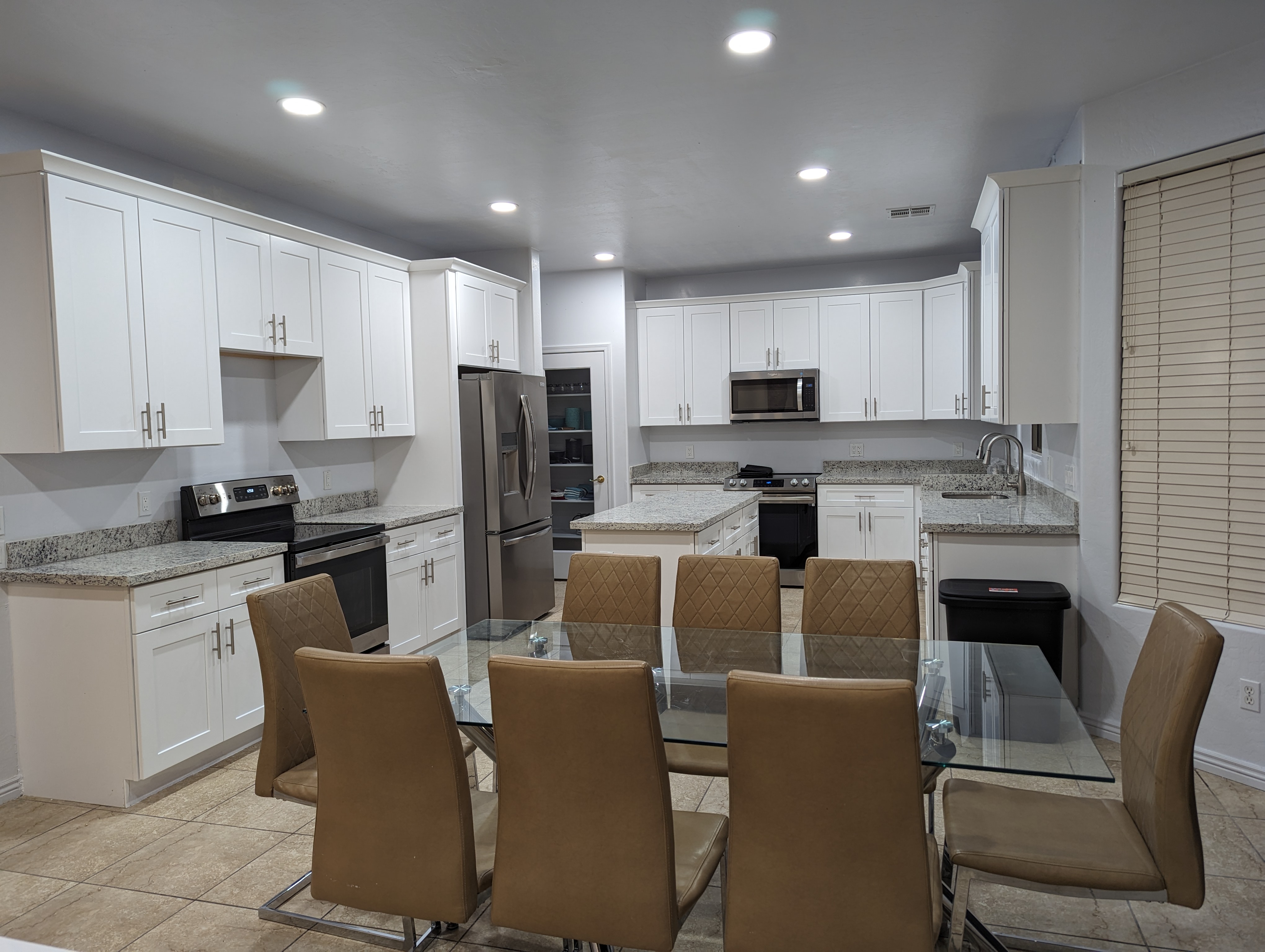 Outside, guests can enjoy a private pool and a beautiful, spacious backyard, perfect for supervised recreation, fresh air, or quiet seating. The setting encourages a calm and enjoyable group experience while maintaining a sense of privacy.