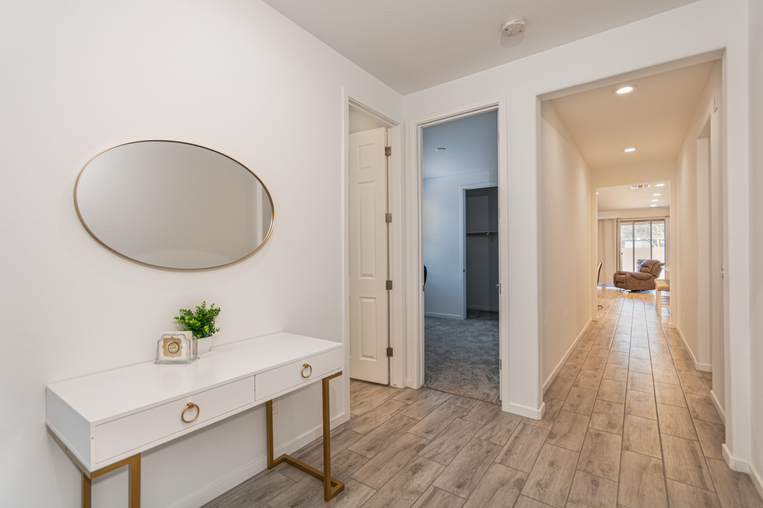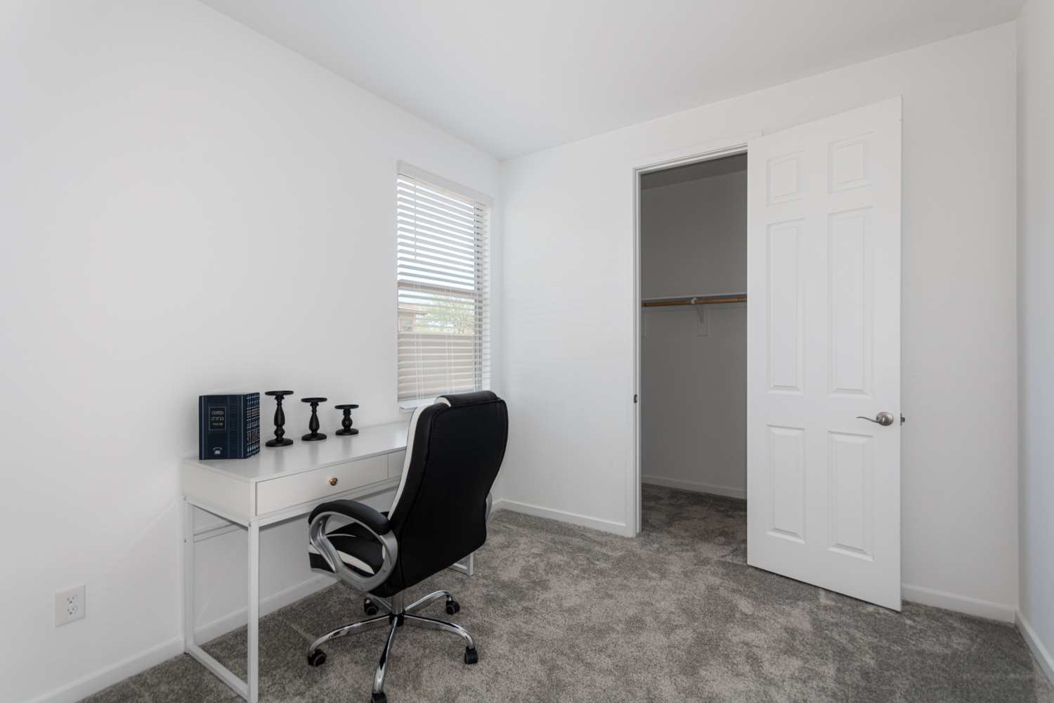 Step outside to a fencedheated pool, and a clean turf backyard with a dedicated seating area. Perfect for unwinding in the Arizona air.